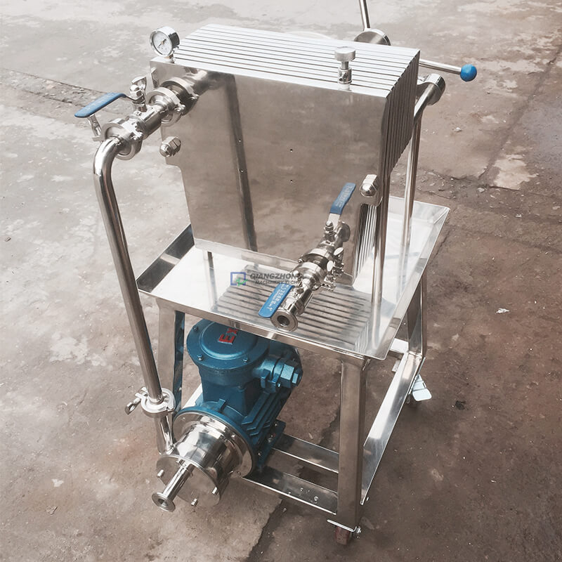 该滤器具有滤液损耗少,流通量大,操作简单,拆装方便,易清洗等优点。滤板采用特殊结构的平面螺纹网状形,光滑平整,使滤材(滤布、滤纸、滤膜)不易破损,能有效地延长各种滤材的使用寿命,从而降低生产成本。本滤器配备不锈钢输液泵,其配用电机功率小,耗电省。机架下装有胶轮,移动灵活、轻便。