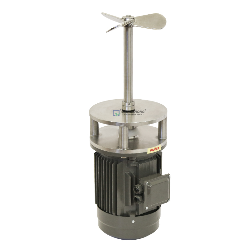推进式搅拌器结构简单,制造方便,剪切作用不大,循环性能好,属于循环型搅拌器。搅拌机由电机、机械密封、堵漏装置、搅拌轴、搅拌器等组成,适用于粘度低、流量大的场合。它利用较小的搅拌功率,通过高速转动的桨叶能获得较好的搅拌效果,主要用于液-液体系混合、温度均一,在低浓度固-液体系中防止淤泥沉降等。